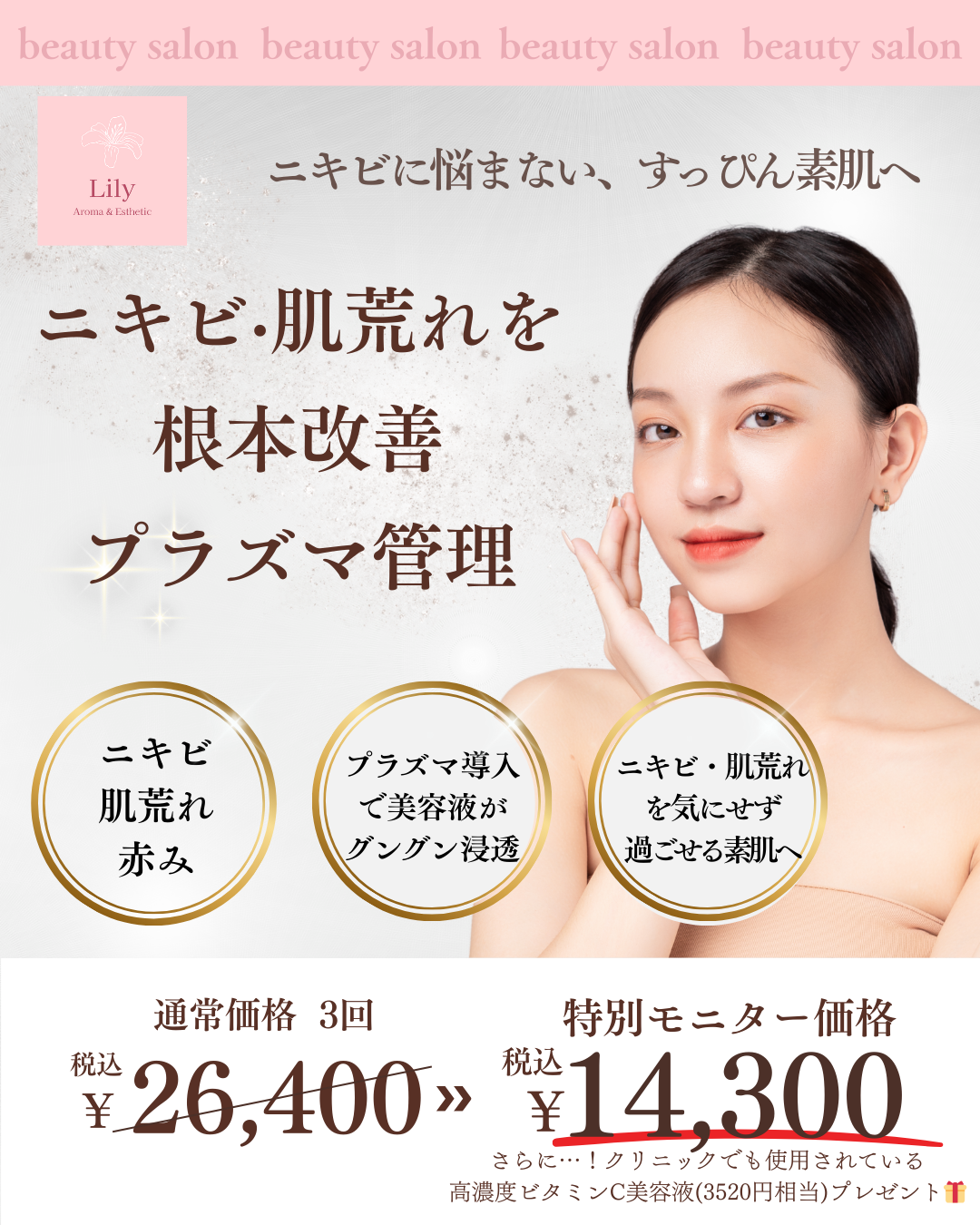 【リピーター様限定☆🎁有】繰り返すニキビをケアし自信素肌へ!3回集中モニター ¥26,400→¥14,300〈先着10名〉